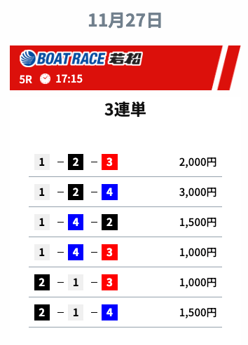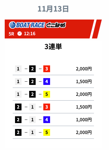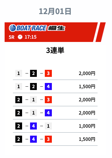 買い目点数は4〜8点と少なめなので、鉄板レースを中心に目標金額の10,000円を狙うスタイルなようです。