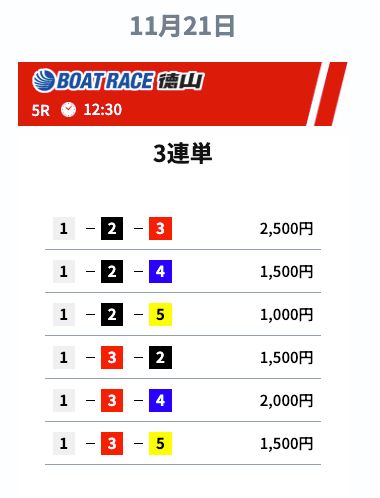| 徳山 | 11/11 | 100% | +80,550円 |