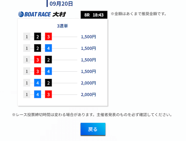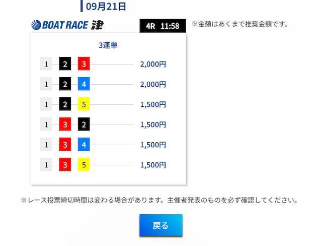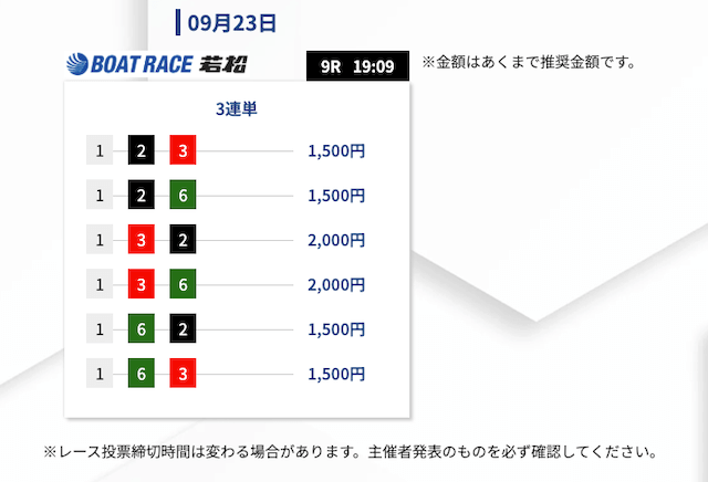 アップボートは参加するレースの状況やオッズによって買い目点数を調整しています。