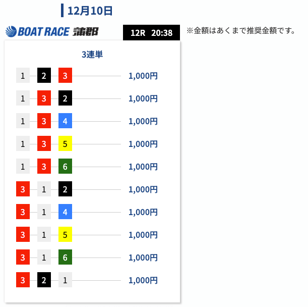 | 的中実績の捏造の有無 | ◯ | 公開されている的中実績は日付・レース番号・払戻金などが明記されており、不自然な重複も見られません。 信頼性は高いと判断されます。 |
