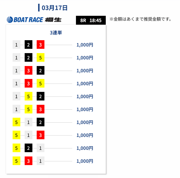 | 03月17日桐生08R | 5-3-1 | 10,000円 | 48,300円 | 483% | |