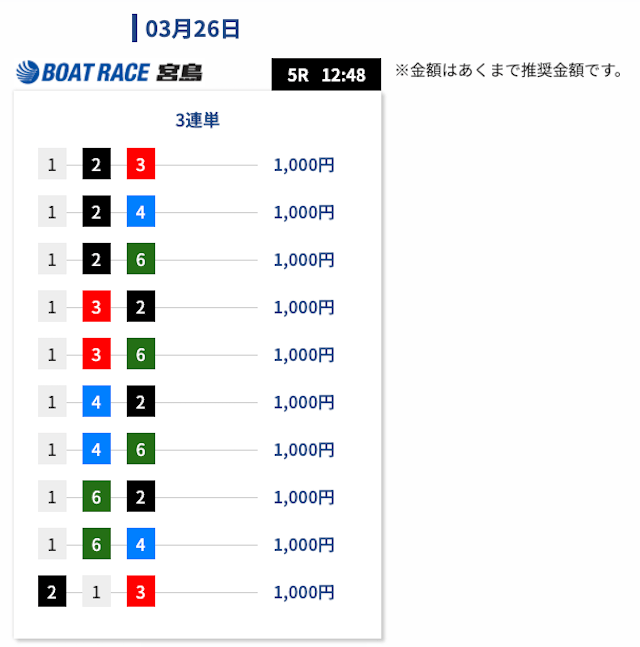 | 03月26日宮島05R | 4-1-6 | 10,000円 | 0円 | 0% | |