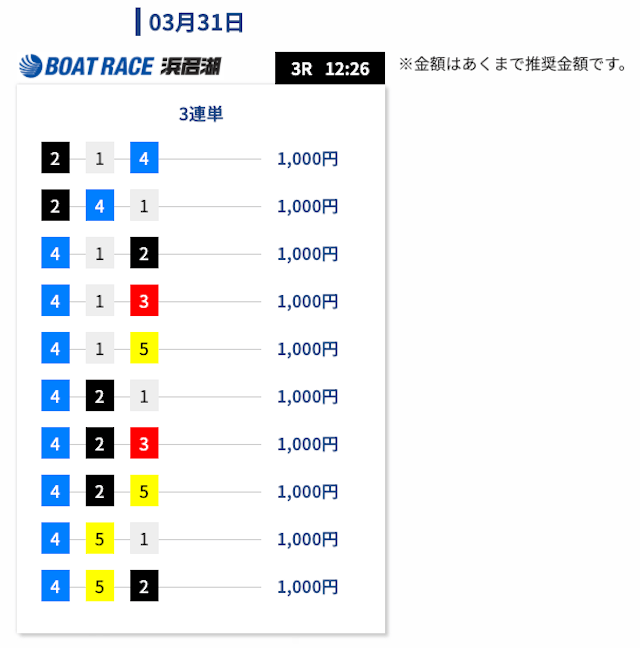 | 03月31日浜名湖03R | 4-2-5 | 10,000円 | 14,500円 | 145% | |