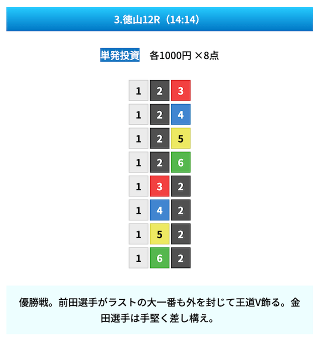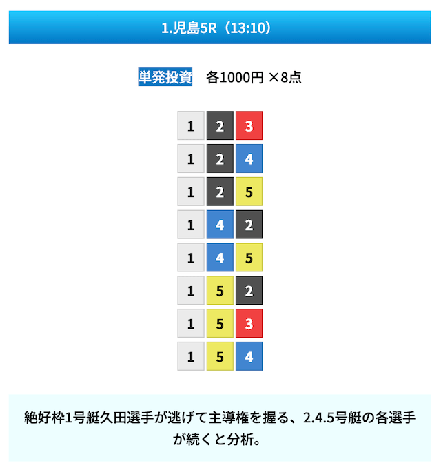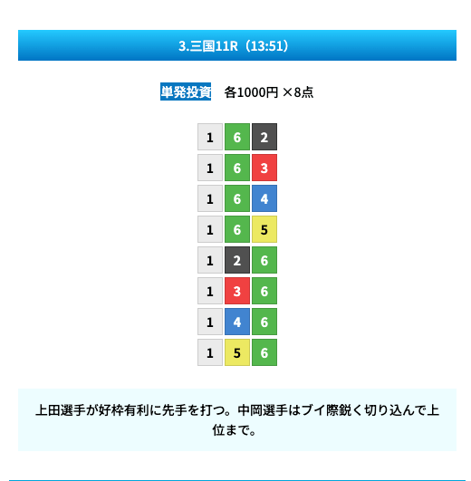 - 買い目点数は8点以内と厳選されている
